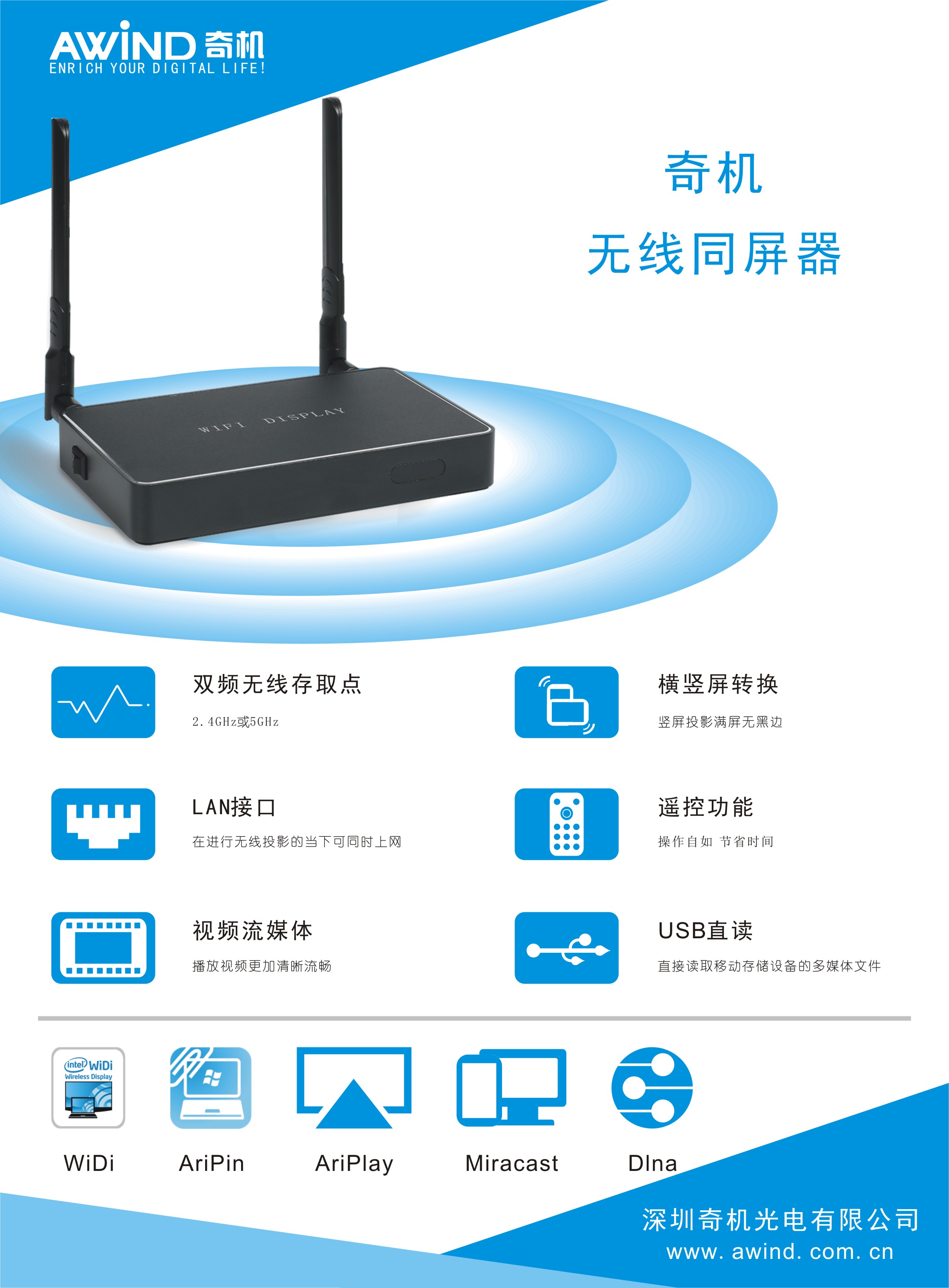 Awind奇機X12手機豎屏無線同屏器 2.4G和5G雙頻支持安卓Miracast、蘋果Airplay