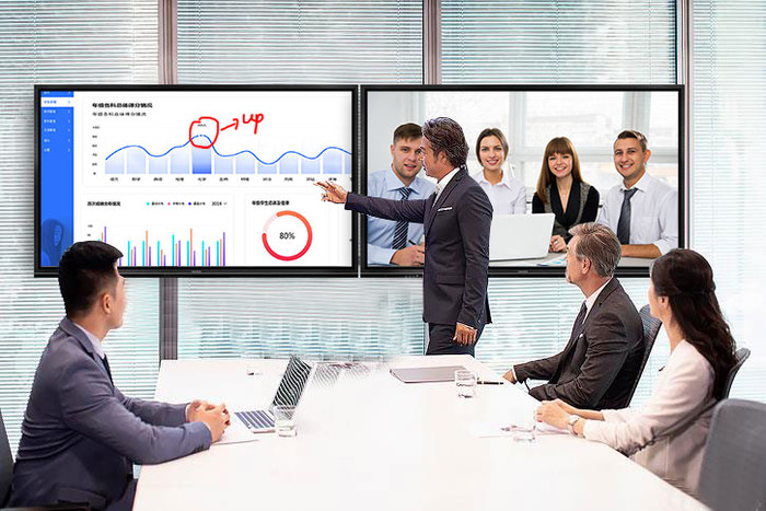 只能顯示單畫面,有對比數據需求時,無法同時顯示多來源的圖像;針對以上問題,解決方案就是在會議室顯示系統的信號輸入端,增加一臺多畫面“無線投屏器”,數據對比清晰明了。